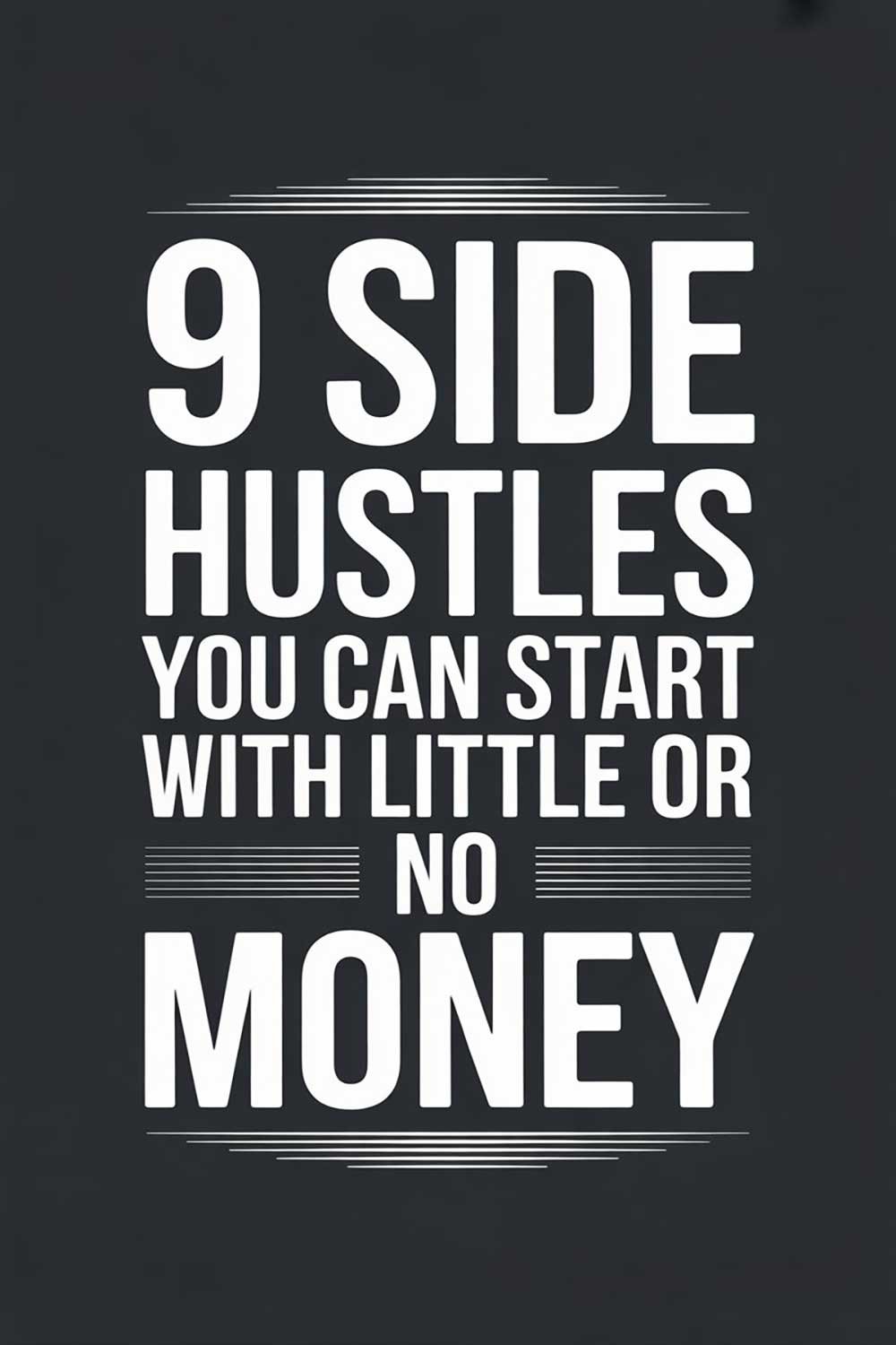 9 Side Hustles You Can Start with Little or No Money You don’t need thousands of dollars to start a